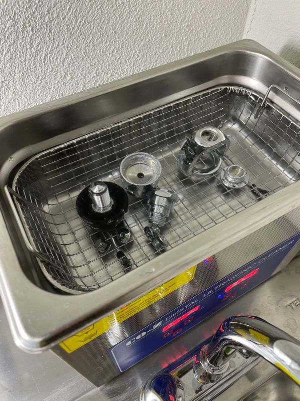 Limpieza por ultrasonido con químicos especiales para la industria del buceo.
